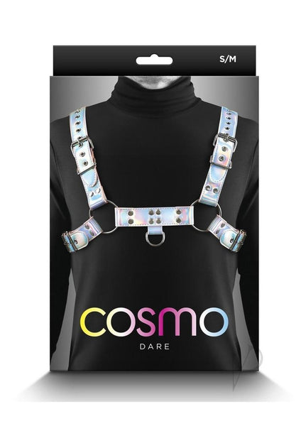 Dress up your assets with Cosmo`s stylish chest harness.andnbsp;Accented with silver nickel-free hardware and adjustable straps for the perfect fit. Made from easy to clean vinyl. Cosmo harnesses are available in a variety of styles and sizes.