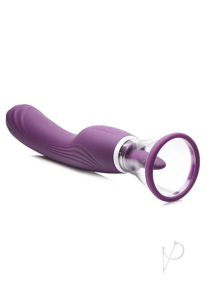 A powerful multifaceted vibrator designed to lick, suck, and vibrate to supplement your sexual creativity! Featuring silicone ringed cups to rhythmically suck on your nipple or clitoris, enhancing the sensations created from the powerful licking digit. Two cups are included - one shaped for the clitoris, and the other for nipples. The licking action tip has 8 licking modes available.The curved, ergonomic shaft features powerful dual motors built to buzz your insides with 3 speeds and 5 patterns of intense vibrations. The Lickgasm is constructed with premium, phthalate-free, latex-free, silicone for a worry free play session. Compatible with water based lubes only, and rechargeable via included USB charging cable.Measurements:Overall length 9.6 inches, insertable length 5 inches, widest insertable diameter 1.6 inches, tongue length 1.5 inchesMaterials: Silicone, ABS Plastic, PolycarbonateColor: PurpleKey Features:Simultaneous Licking and Suction: Featuring two interchangeable cups for use on your vagina or nipples; enjoy a rhythmic vacuum while your erogenous zones get a good licking; 8 licking modes availableErgonomic Vibrating Shaft: The curved, ribbed shaft provides a plush fill alongside 3 speeds and 5 patterns of powerful vibrationLuxurious Materials: Constructed with premium phthalate-free, latex-free silicone for a body safe and worry free experience; compatible with water based lubes onlyRechargeable and Waterproof: USB charging cable included; built with IPX7 waterproofing for ease of cleaning and shower friendly fun5 Year Warranty Included
