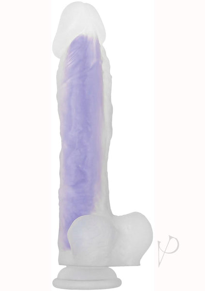 Find your inner glow with this luminous large dildo that shines purple through a translucent shaft and balls, crafted and textured to look and feel like the real thing.With a dual-layered liquid silicone materia that feels like real skin, the glow-in-the-dark sizable shaft is bendable and flexible to move with your body, while the powerful suction cup base gives you tantalizing hands-free options.Charge the glowing color by simply placing your toy in the light and then enjoy navigating your after-dark play time in style!Clean with Evolved Toy Cleaner and a warm water rinse.Large glowing life-like shaped dildo with ballsGlow in the dark for fun night time playDual layered liquid silicone for skin feelRealistically bendable and flexiblePliable yet firm large shaftLife like textures and tipBright light charges glowing inner layerSuction cup for hands-free playPhthatlate and latex freeWaterproof and submersibleDimensions:Width: 3.29 in.Height: 10.5 in.Depth: 3.23 in.