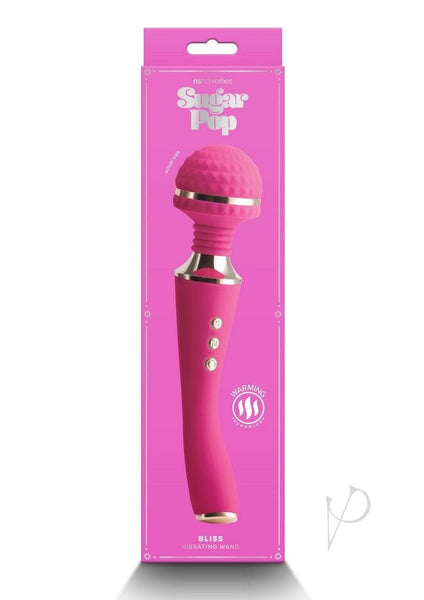 Keep pleasures in the palm of your hand with the visually breathtaking Bliss - the ultimate wand for explosive vibrations. Elegantly provide enticing massage to all erogenous zones. Bliss by Sugar Pop features warming function for elevatedandnbsp;temperatureandnbsp;sensation. Made of premium silicone and rechargeable.