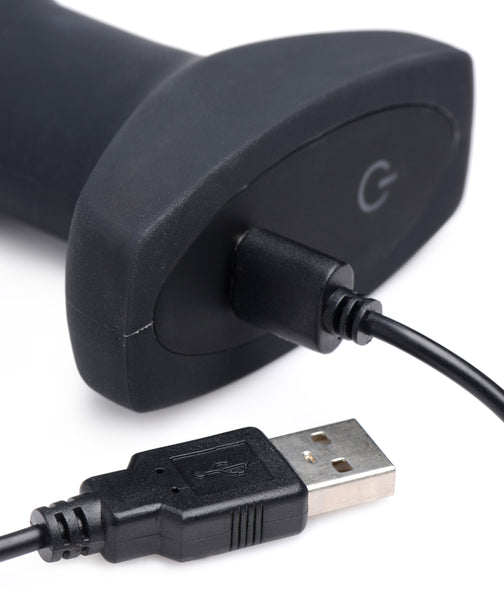 Shove a missile up your butt and wait for the explosion! Expand your pleasure with this inflatable and vibrating anal toy unlike any other. This silky-smooth silicone plug will gently swell within you for an unbelievable sensation of fullness. Treat yourself or your partner to 7 modes of vibration, including 3 speeds and 4 patterns. The remote control does it all, sending buzzes into you booty, as well as allowing you to find the perfect inflation point. Just hold down the button on the left to begin the ballooning, or press it more carefully for a slow, gradual growth. The button on the right will instantly deflate it back to its original size for a comfortable removal.
